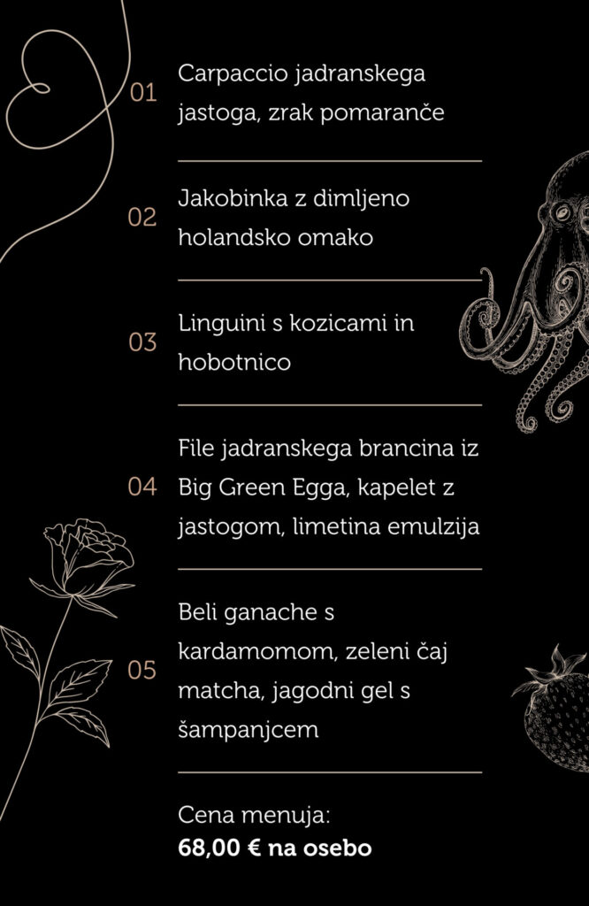 Večer, kjer se romantika sreča z eleganco, vrhunsko kulinariko, skrbno izbrano pijačo in glasbo v živo.